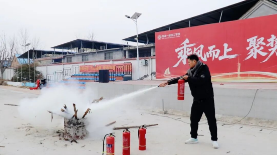 02 短短2分钟,全体师生便安全集结至操场指定区域,各班快速清点人数并上报,实现 “零遗漏、零意外”校园消防安全。 讲解消防安全工具使用方法 集结现场,我校宋教官聚焦实操技能开展教学。通过“拆解讲解+标准示范”的方式,清晰传授干粉灭火器“提、拔、握、压”四字操作口诀,细致说明压力表红、绿、黄三色区域的判断标准,并现场演示灭火器使用方法。 随后,师生代表依次上前实操演练,在教官一对一指导下,精准完成火焰根部喷射操作,切实将理论知识转化为实战技能。