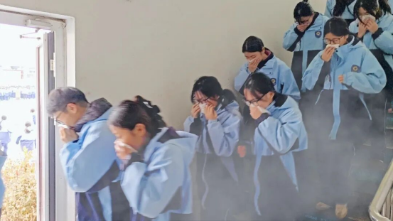 安全无小事,责任大于天。学校安全工作领导小组提前制定了详尽的演练方案,召开了专题部署会,明确了各岗位职责。前期对各疏散通道、消防设施进行了全面检查,确保万无一失。 紧张有序,高效协同 上午9:30,伴随着一阵急促的警报声,消防安全演练正式拉开帷幕。全体师生迅速以班级为单位,按照既定方向与路线,迅速用湿毛巾捂住口鼻,弯腰低姿,严格遵循“靠右行、不推挤、快而有序”的原则,沿预设路线向操场安全区域撤离。楼层护导教师严格按照演练前规划的消防安全逃生方案疏散学生,确保楼层内学生的安全,有效避免了拥挤或踩踏事件的发生。